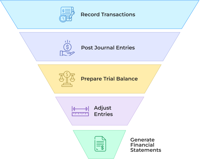 The cycle ends with closing entries and ledger finalisation locking the books for the period and ensuring a clean start for the next.
